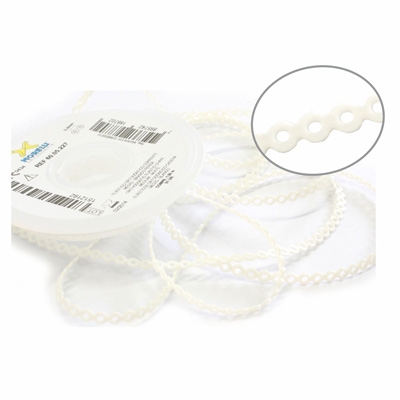 Elástico de cadena mediana, útil en cierres mecánicos de espacio, retracción anterior y tracción de dientes.